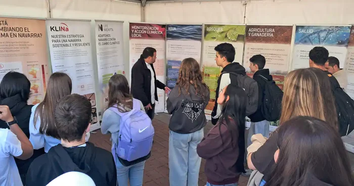 Durante la visita, los estudiantes de la asignatura de Cultura Científica conocieron de primera mano los retos climáticos a los que se enfrenta tanto Navarra como el conjunto del planeta, así como las medidas de adaptación que ya se están implementando en el territorio. La exposición sirvió como espacio de reflexión y aprendizaje sobre la importancia de actuar de manera coordinada frente a esta crisis global.