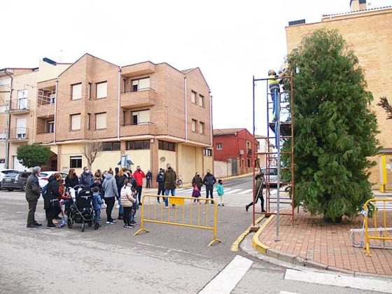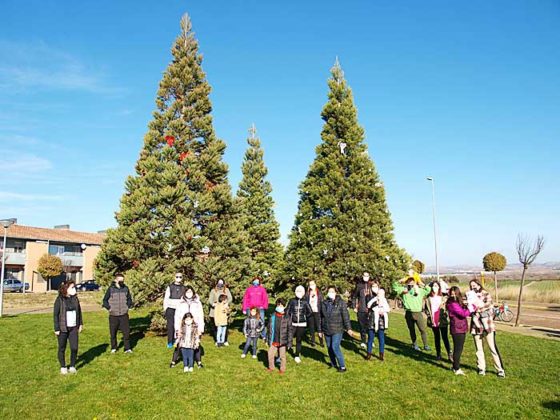 Vecinos de Ribaforada decorando los pinos
