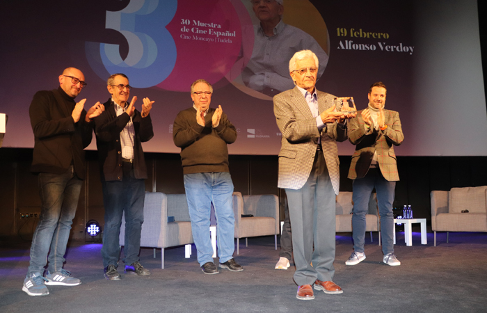 [ihc-hide-content ihc_mb_type=»show» ihc_mb_who=»4,5,6,7,8,9″ ihc_mb_template=»2″ ]Alfonso Verdoy recibía ayer el primero de los homenajes de la 30 Muestra de Cine Español, que estos días se desarrolla en Tudela. Alfonso Verdoy, miembro del Cine Club Muskaria de Tudela desde año 1967, es actual miembro de su junta directiva y persona crucial en la historia del cineclub, de la Muestra, de Opera Prima, de la cultura y de la docencia en Tudela.
