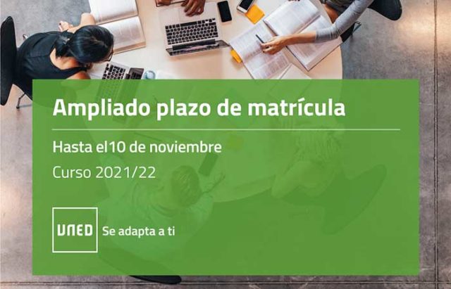 La UNED amplía el periodo de matrícula para estudios de Grado, Microgrado, Másteres oficiales, Cursos de idiomas y Curso de Acceso a la universidad para mayores de 25 y 45 años para el curso 2021-2022, hasta el próximo 10 de noviembre.