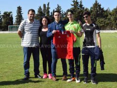 Román Alonso, delantero del Cabanillas juvenil, ya luce orgulloso la camiseta firmada por los jugadores de la primera plantilla del Club Atlético Osasuna, que...
