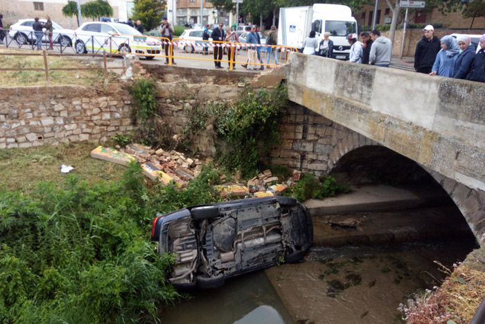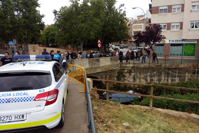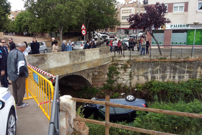 [ihc-hide-content ihc_mb_type=»show» ihc_mb_who=»4,5,6,7,8,9″ ihc_mb_template=»2″ ]Un vehículo se ha precipitado esta mañana al cauce del río Queiles a la altura del conocido como Puente Mancho. Al parecer, los hechos han ocurrido sobre las ocho y media de la mañana, y sus ocupantes acababan de dejar el coche en el pequeño aparcamiento que junto a la iglesia de Capuchinas. El vehículo se desplazó bajando la cuesta, cruzo el Paseo de los Poetas y acabo en el cauce del río después de destrozar el muro. Ningún otro vehículo ha resultado afectado ni se han producido heridos. Durante la mañana, estaba previsto llevar a cabo las labores pertinente para rescatar el coche del fondo del río.