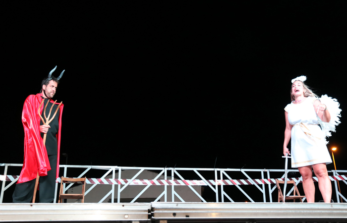 Aunque no hayan podido celebrarse las fiestas patronales, Buñuel ha recuperado este año su paloteado. El pasado 15 de agosto alrededor de 700 personas pudieron disfrutar del tradicional espectáculo. Como novedad, Begoña Litago debutaba en el escenario como Mayoral. Junto a ella, Jesús Osta, interpretó al Rabadán, Marina Ojuel hizo de Ángel, Víctor Malo, de un divertido Diablo, Miguel Ángel Muñoz, fue el Pastor, y de apuntadores estuvieron Ana Ducar, Toni Chueca, y Jon Oliveros. Junto a ellos, danzaris, gaiteros… En total, más de 40 personas que hicieron posible que el paloteado fuese una realidad después de la suspensión del año pasado. Desde el colectivo, comentaban que llevan desde junio ensayando a contrarreloj.