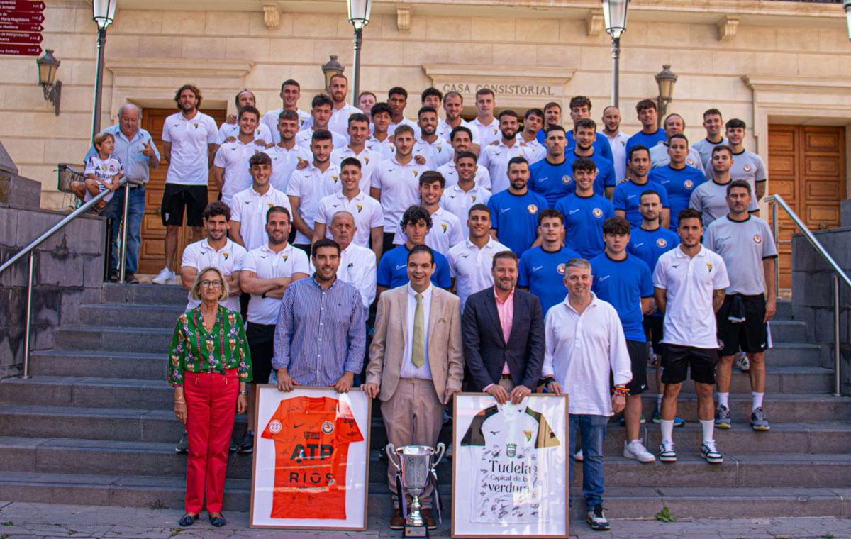 El pasado jueves, las plantillas del CD Tudelano y del Ribera Navarra FS han protagonizado una emotiva visita institucional a dos de los enclaves más representativos de la capital ribera: la Catedral de Santa María de Tudela y el Ayuntamiento.