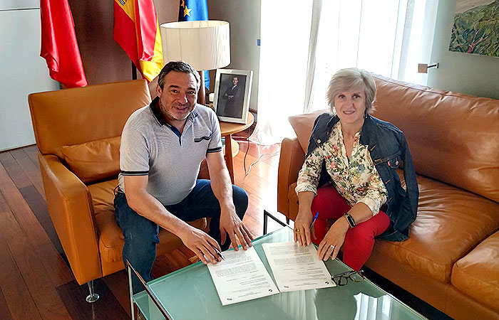 El pasado 25 de septiembre José María Agramonte, presidente de la Comunidad de Bardenas, e Izaskun Ciriza, directora del IES Valle del Ebro, sellaron la renovación de un nuevo convenio de colaboración que permitirá dar continuidad al proyecto de investigación sobre el recuento de aves en el muladar de Mainate, a la vez que se han definido nuevas propuestas para corto y medio plazo.