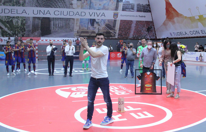 [ihc-hide-content ihc_mb_type=»show» ihc_mb_who=»4,6,5,7,8,9″ ihc_mb_template=»2″ ]El fin del partido ante FC Barcelona y, por tanto, de la temporada, no supuso el fin a las emociones en el Ribera Navarra FS. Todo lo contrario, justo después del pitido final, un emocionado Ciudad de Tudela tributó un sincero, emotivo y merecido homenaje a Ferran Plana justo un año después de su precipitada retirada a causa de una lesión que truncó una carrera que tenía un gran presente y que prometía un mejor porvenir.