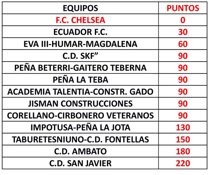 9,00 H Jes – 1 : F.C. Chelsea 2 – C.D. San Javier 0