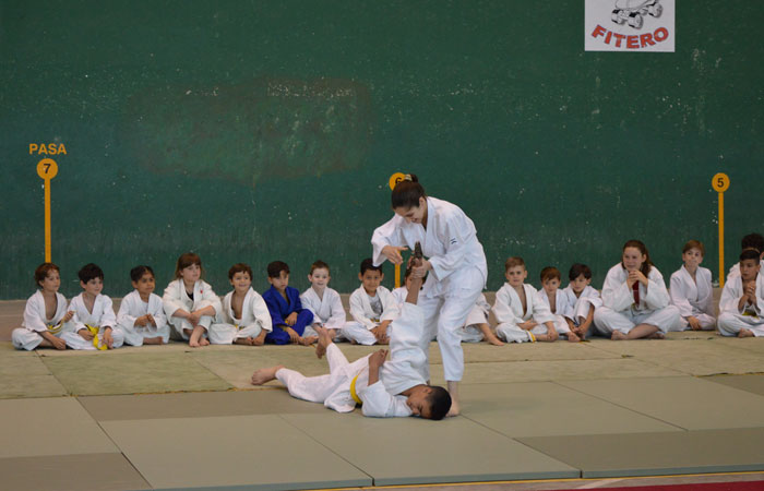 El evento dio comienzo a las once de la mañana en el polideportivo municipal y estuvo dentro del fin de semana del Deporte organizado por el M.I. Ayuntamiento fiterano, donde asistieron 21 judokas de esta sede y 27 del equipo Shogun de Tudela. La actividad empezó con calentamiento inicial, seguido de una serie de juegos que los niñ@s practican en clase y varios randoris entre alumnos de ambas sedes. Seguidamente hubo una serie de exhibiciones donde los protagonistas de la primera fueron los niños de 4 y 5 años proyectando con una serie de técnicas a alumnos de entre 13 y 15 años. A continuación, se realizó una exhibición de Defensa Personal, protagonizada por Unai Isla, Anais Alfonso, Youness Hahaff y Hanza Salhi. Seguidamente el Maestro, como es habitual en él, improvisó y, sus alumnos de Tudela, Adrian Muela y Rebeca Rodríguez, realizaron el Nage No Kata que están preparando para que Adrian pueda obtener, en breve, su cinturón negro 1º Dan. Después, Esmael Salhi y Wissan realizaron una serie de ataques y defensas enfocados a la «Defensa Personal Femenina» donde Wissan reaccionaba ante los diferentes ataques de su compañero. Siguiendo con las actividades, Iosu Bea, realizó una serie de técnicas del programa de cinturón amarillo ante todo el público allí presente. Para terminar con el entrenamiento, se hicieron una serie de randoris entre profesores y los niñ@s allí presentes de las dos sedes.