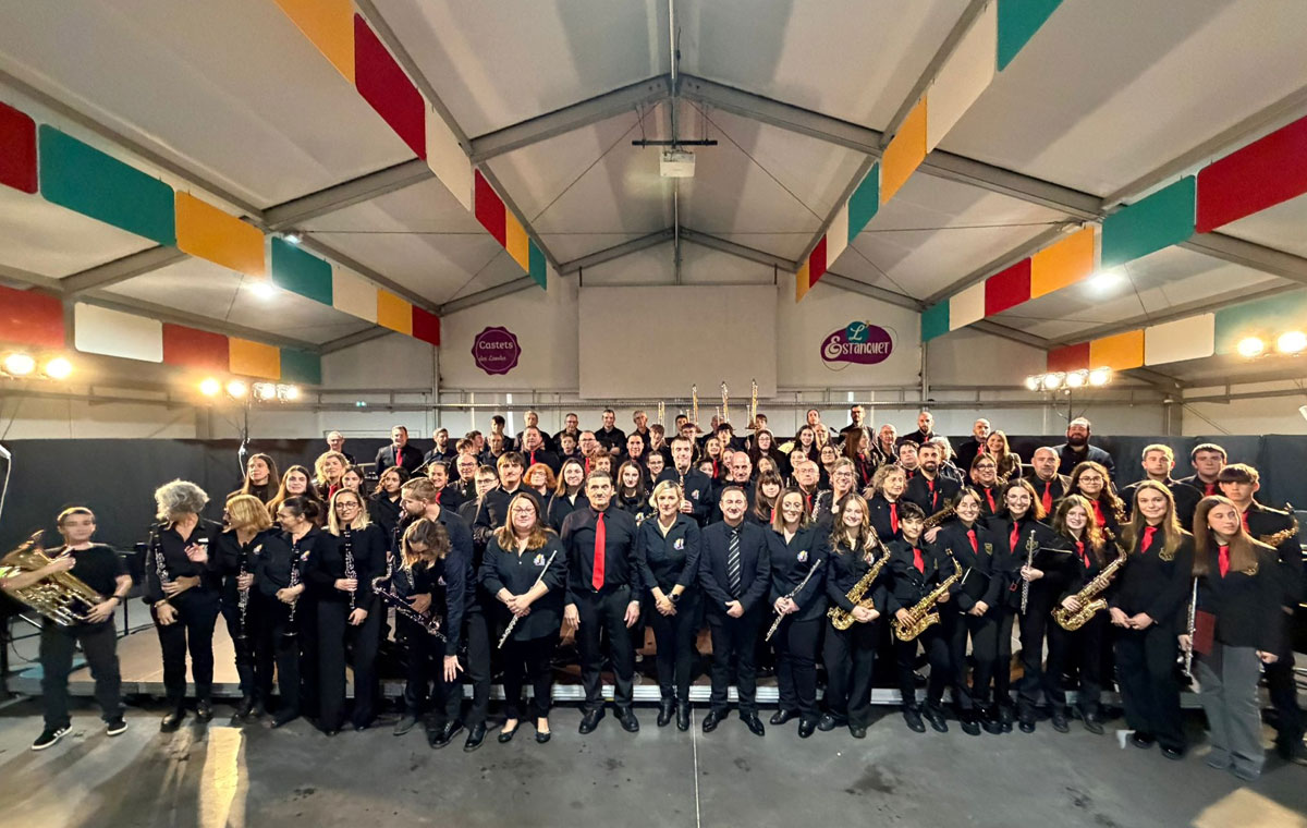 Castets, donde se presentó a las dos bandas y se dio la bienvenida a la delegación, y el concierto conjunto celebrado por la tarde en la Salle de l’Estanquet, que reunió a músicos y público de ambos municipios y sirvió como punto culminante del encuentro.