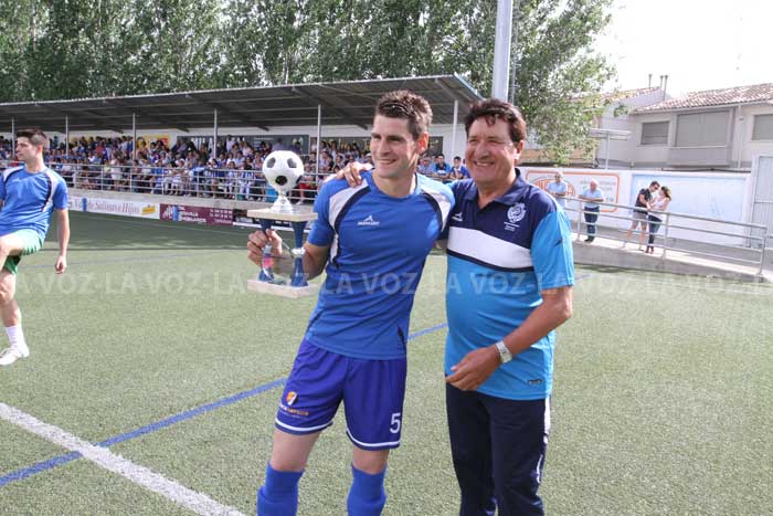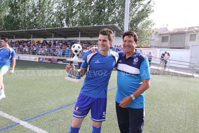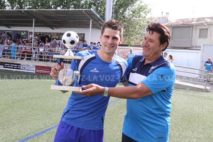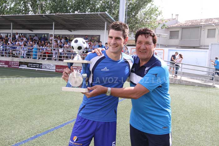 Isi del Río, central del C.A. Cirbonero, ha recibido el trofeo al jugador más regular del equipo blanquiazul, concedido por Jesús Martínez Pénjamo. El acto ha tenido lugar antes de comenzar el partido de promoción de ascenso a Segunda División B entre el Cirbonero y el Guadalajara que ha finalizado con victoria ribera por 1-0 y, por lo tanto, ha pasado a la segunda fase del play off.