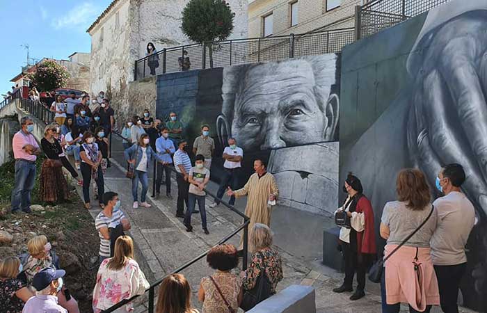 A su vez, la visita a los diversos murales recientemente pintados sirvió también para contar retazos de su historia antigua, medieval y moderna. Haciendo especial hincapié en la familia judía Abenabez-Ablitas y su entidad financiera el banco “Casa de Ablitas”. En otro orden de cosas, se reivindicó la figura de este linaje y su triste expulsión en 1498 de Navarra hacía el norte de África.