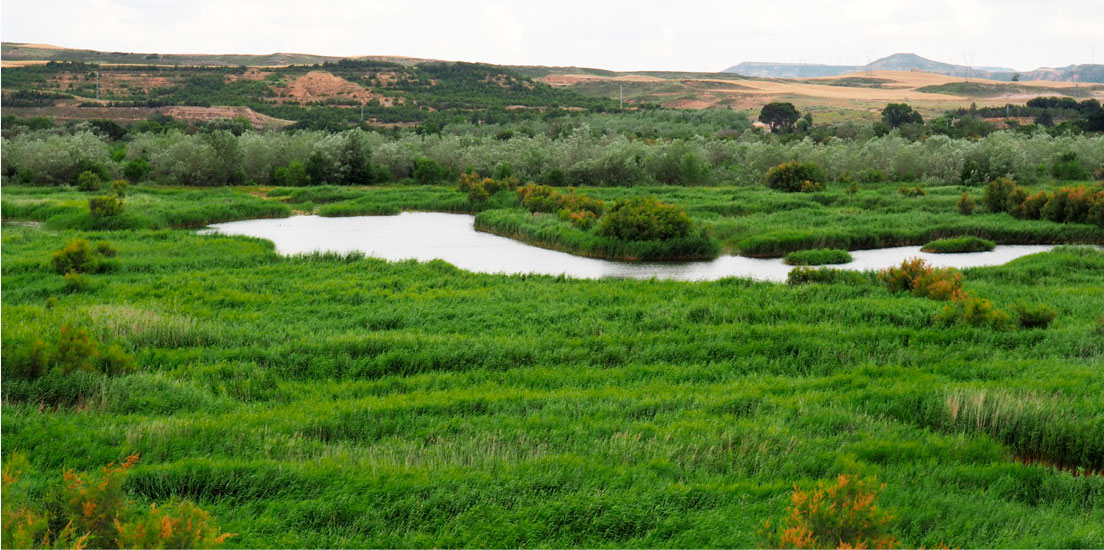 A escasos 5 km de Tudela, accediendo desde la margen derecha que une la ciudad con Castejón, podemos contemplar un hábitat privilegiado para todo tipo de aves acuáticas, conformado por la dinámica secular del Ebro y la ejemplar acción restauradora del patrimonio natural por el ser humano. La garza imperial y la garza