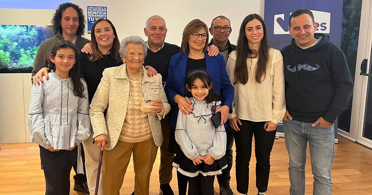 Asunción Bienzobas Espelta ha sido galardonada con el premio al voluntariado en el concurso nacional organizado por la Federación Lares. Con sede en Madrid, Lares representa a más de 600 residencias sin ánimo de lucro en España.