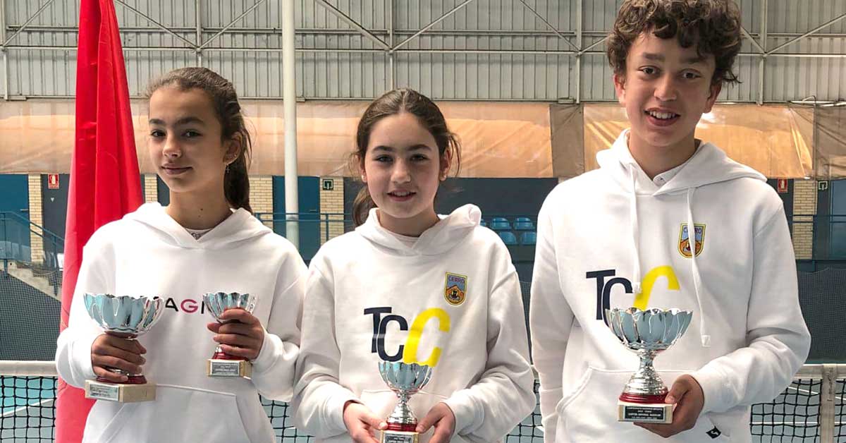 Las tenistas María Trujillo y Paulina Gil, y el tenista Adrián García, firmaron una excelente jornada para el Tenis Club Cerro Fontellas que se ha traído a sus vitrinas tres campeones en la categoría infantil del tenis navarro.