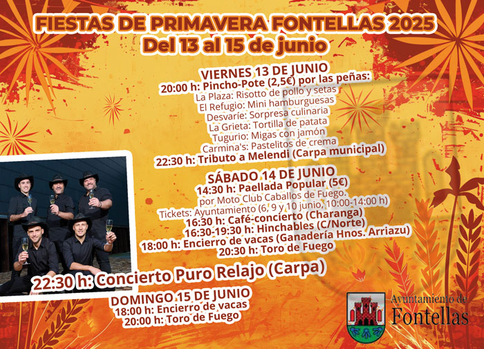 Los días 13, 14 y 15, Fontellas celebra sus populares Fiestas de la Juventud. Una cita, que según la concejala de Festejos, Sara Lorente, “los vecinos reciben, como todas nuestras fiestas, con ilusión y con ganas porque ya han pasado bastantes meses desde las últimas fiestas de otoño”.