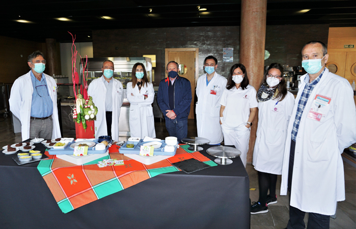 La presentación del menú se ha realizado en la cafetería de personal del HRS con la asistencia del presidente de la Orden del Volatín, Rafael Remírez de Ganuza. A lo largo de la jornada está previsto que el centro hospitalario sirva un total de 120 menús a pacientes (20 de ellos en la forma texturizada) y alrededor de 60 dietas a profesionales y familiares de pacientes ingresados.