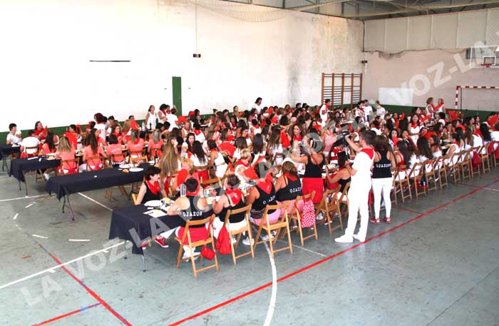 Tras la finalización del encierro del medio día las participantes en el día de la mujer se dieron cita en el patio escolar para dar comienzo a los actos programados en su día que comenzaban con el lanzamiento, desde el balcón de la casa consistorial del cohete anunciador a cargo de la reina y damas de honor de la juventud 2019, Zaira Serrano Mora, Iria Santamaría y Carla Cerdán que fueron elegidas representantes de la Juventud y proclamadas como tales, en las pasadas fiestas de la Juventud de julio.