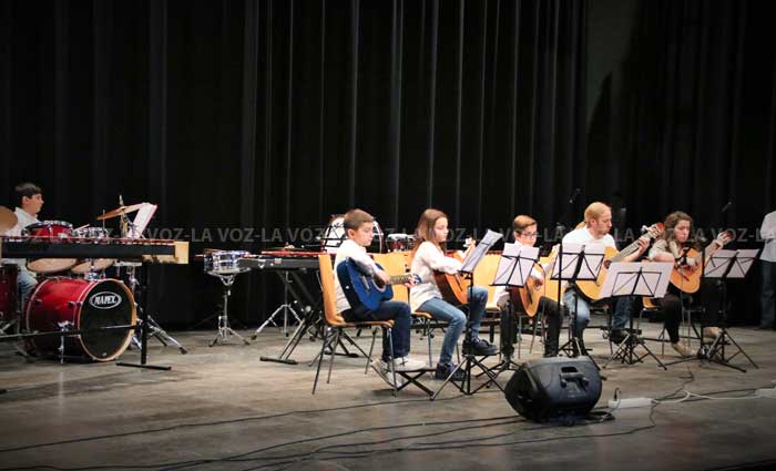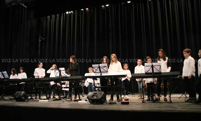 Los primeros en pisar las tablas del escenario fueron los de la agrupación de piano que tocaron Mix Villancicos Ingleses, les siguió la agrupación de alumnos infantil con Arre Borriquito, la agrupación de guitarras interpretó el conocido tema Soldadito Marinero de Fito y Fitopaldi. Ya vienen los Reyes y el Himno a la Alegría fueron los dos siguientes temas que se escucharon tocados por el grupo de conjunto musical, la agrupación de trompetas ofrecía Campana sobre Campana y En la más fría noche, acto seguido eran los alumnos de clarinete y trombon quienes tocaban el tema central de la película Carros de Fuego, a estos les siguieron los de saxofón con Aleluia de Haendel y Midnight Serenade, para poner el broche final a un excelente concierto fueron los componentes de percusión quienes interpretaron el tema central de la película La misión.