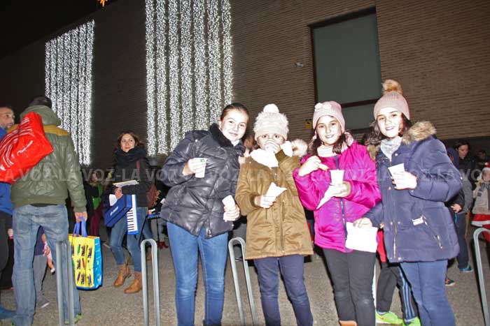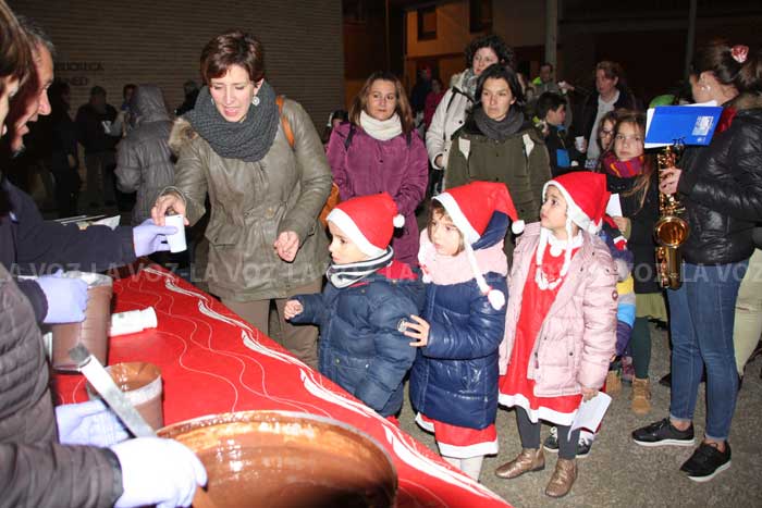 Tras varias paradas por el recorrido interpretando y cantando, se finalizó en la Casa de Cultura, donde tuvo lugar la iluminación navideña que adornaba la misma, y posteriormente se procedió al reparto de unos 200 vasos de chocolate con bizcochos, elaborados por la churrería local de Carlos de la Victoria del que dieron buena cuenta los miembros de la Escuela de Música y acompañantes.