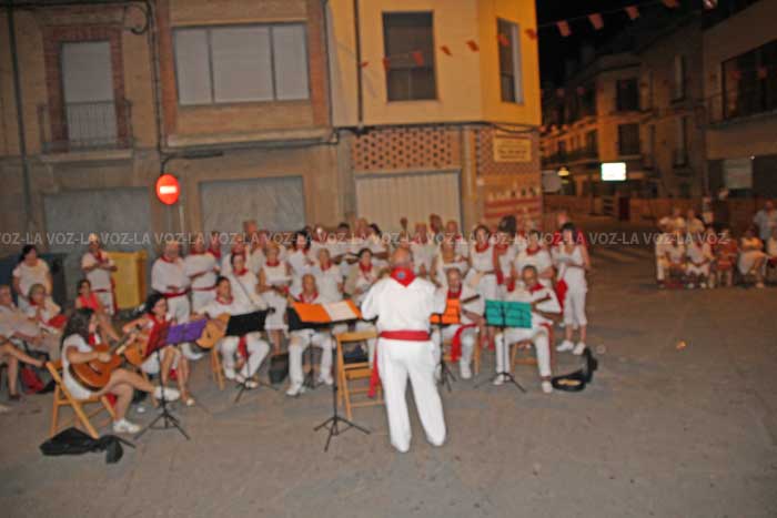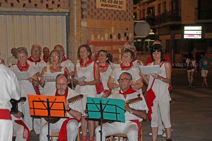 Por su parte, la Coral de Murchante y la Rondalla SANTA CECILIA dieron un pequeño concierto en la Placeta del Paretón, cantaron cinco temas musicales todos ellos compuestos por gente de Murchante. De los cinco temas musicales dos eran jotas que las cantaron el dúo , MARÍA CLEMENTE Y CESAR SIMÓN.