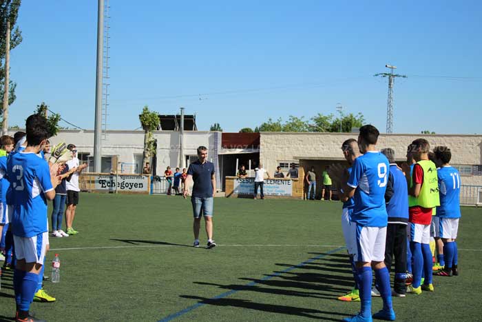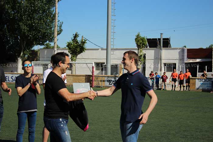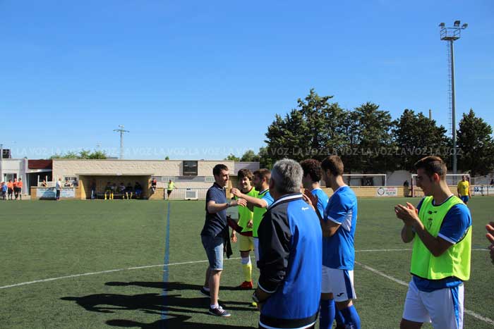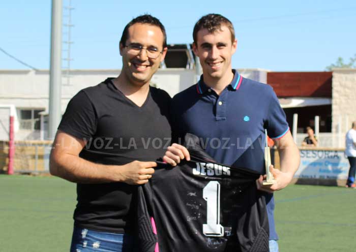 El club le entregó ayer una placa y una camiseta firmada por todos compañeros, que le fue entregada por LUIS ÁNGEL JIMENEZ, que fue su antecesor en la portería en Tercera División.
