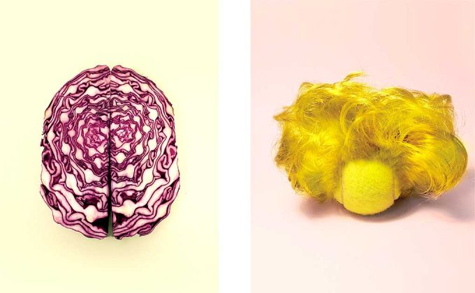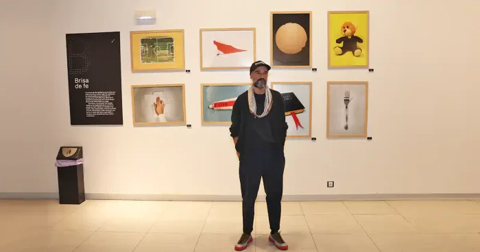 Ese es el punto de partida de su proyecto. Un espacio donde cada imagen se cuestiona a sí misma, choca contra otras y genera híbridos imposibles pero certeros. Fotografías manipuladas sin artificios tecnológicos, sin IA, sin 3D. Solo imaginación, objetos cotidianos y un proceso de creación tan artesanal como inteligente. “Ha habido tontería natural, no inteligencia artificial”, bromeó Arellano.