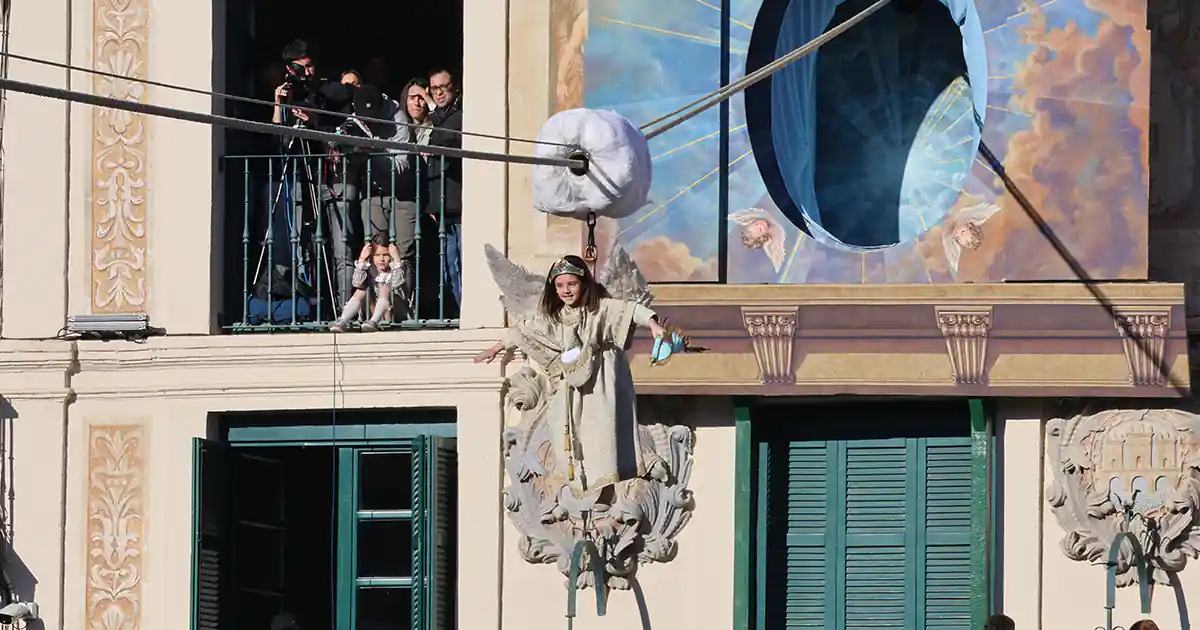 09:00 h – Ceremonia del Ángel (Encarna la figura del Ángel la niña tudelana EMMA MADORRÁN OJUEL) – Plaza de los Fueros, Casa del Reloj