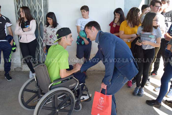 Aitor Royo, por su parte, ha expresado en nombre de Osasuna la satisfacción del club rojillo por la excelente evolución del delantero, que sufrió un accidente de tráfico el pasado 18 de marzo, permaneciendo 10 días en coma y 21 ingresado en el Complejo Hospitalario de Navarra, en Pamplona. A continuación le ha hecho entrega de la camiseta firmada por los jugadores de la primera plantilla de Osasuna y le ha invitado a ver un partido de fútbol en el palco del Estadio El Sadar.