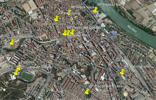 Los nuevos puntos de la red wifi pública de Tudela llegarán a la Plaza Vieja y Ribotas. También al polideportivo y piscina «Ciudad de Tudela». La Plaza Padre Lasa en el Barrio de Lourdes. La Casa del Reloj y el patinódromo. El parque fluvial del Queiles, el Paseo del Queiles, el Paseo de los Poetas y la calle Herrerías.