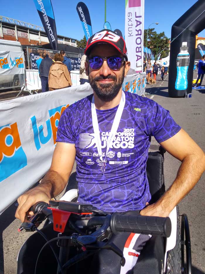 El pasado 8 de octubre dejo el pabellón muy alto en Burgos, disputando la Media Maratón, en la que participaban 15 hanbikes. Gran carrera la que realizó, disputándose el bronce en los últimos metros, en un gran sprint del que se quedó solo a dos segundos de conseguir la medalla.