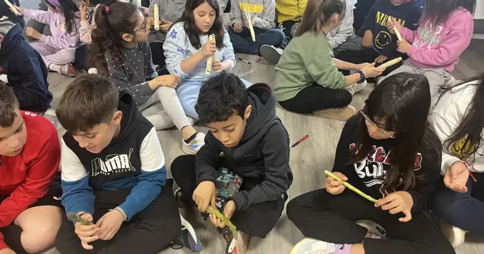 Clases de historia y biología, entremezcladas con juegos mediante fichas que los estudiantes debían rellenar, y donde además encontraban explicaciones que luego podrían releer en casa. “Estos tres cultivos que veis en la hoja son productos que yo produzco, tenéis que unir el grano, con el campo y con el nombre. Luego os enseñaremos distintos tipos de semillas de cereal para que las toquéis, estarán en saquitos y os las iremos pasando de unos a otros”, les contaba Liberal.