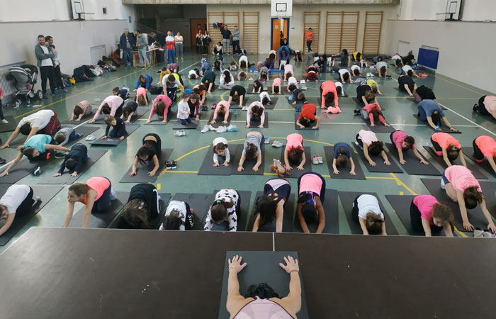 En esta edición, organizada por la Apyma del centro y la empresa MMJ Trainer, los asistentes realizaron una sesión de zumba, una gymcana en familia y stretching.