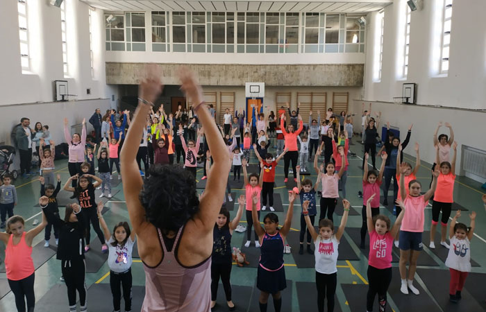 En esta edición, organizada por la Apyma del centro y la empresa MMJ Trainer, los asistentes realizaron una sesión de zumba, una gymcana en familia y stretching.